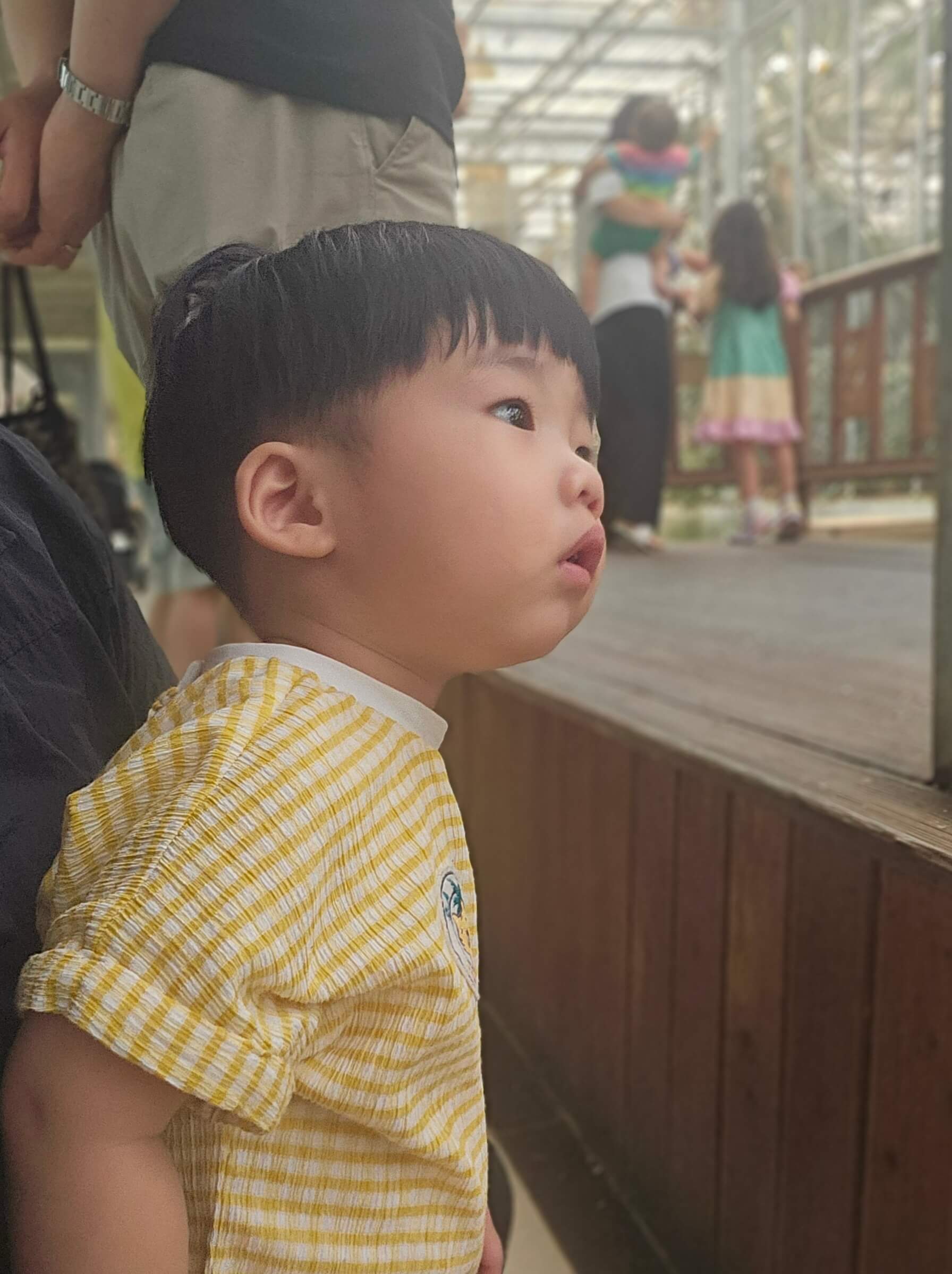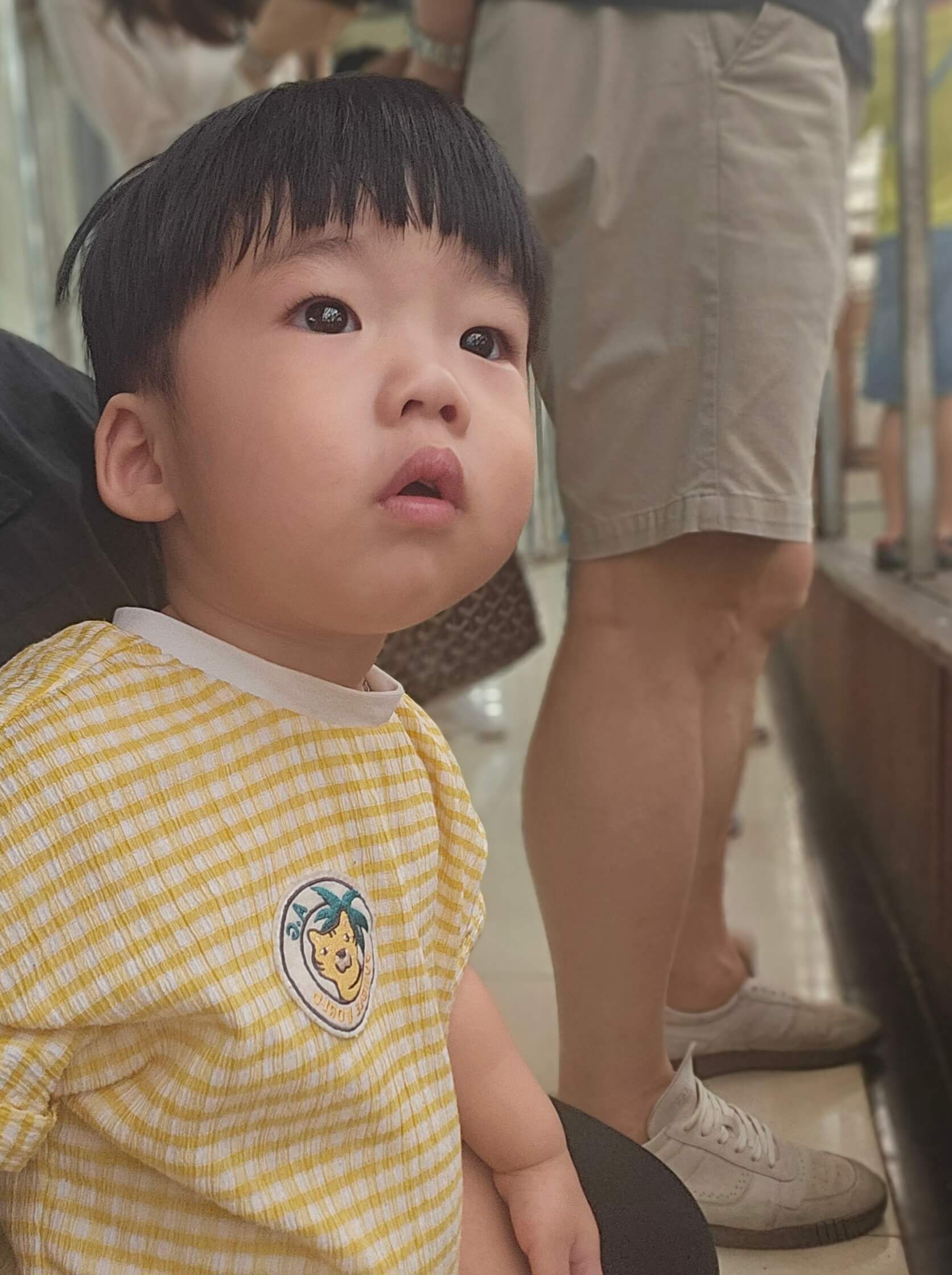 입구에서부터 새가 떼 지어 날아가는 걸 보고 무서운지 엄마품에 착- 달라붙어서 구경하고 있는 모습 쏘 큐트