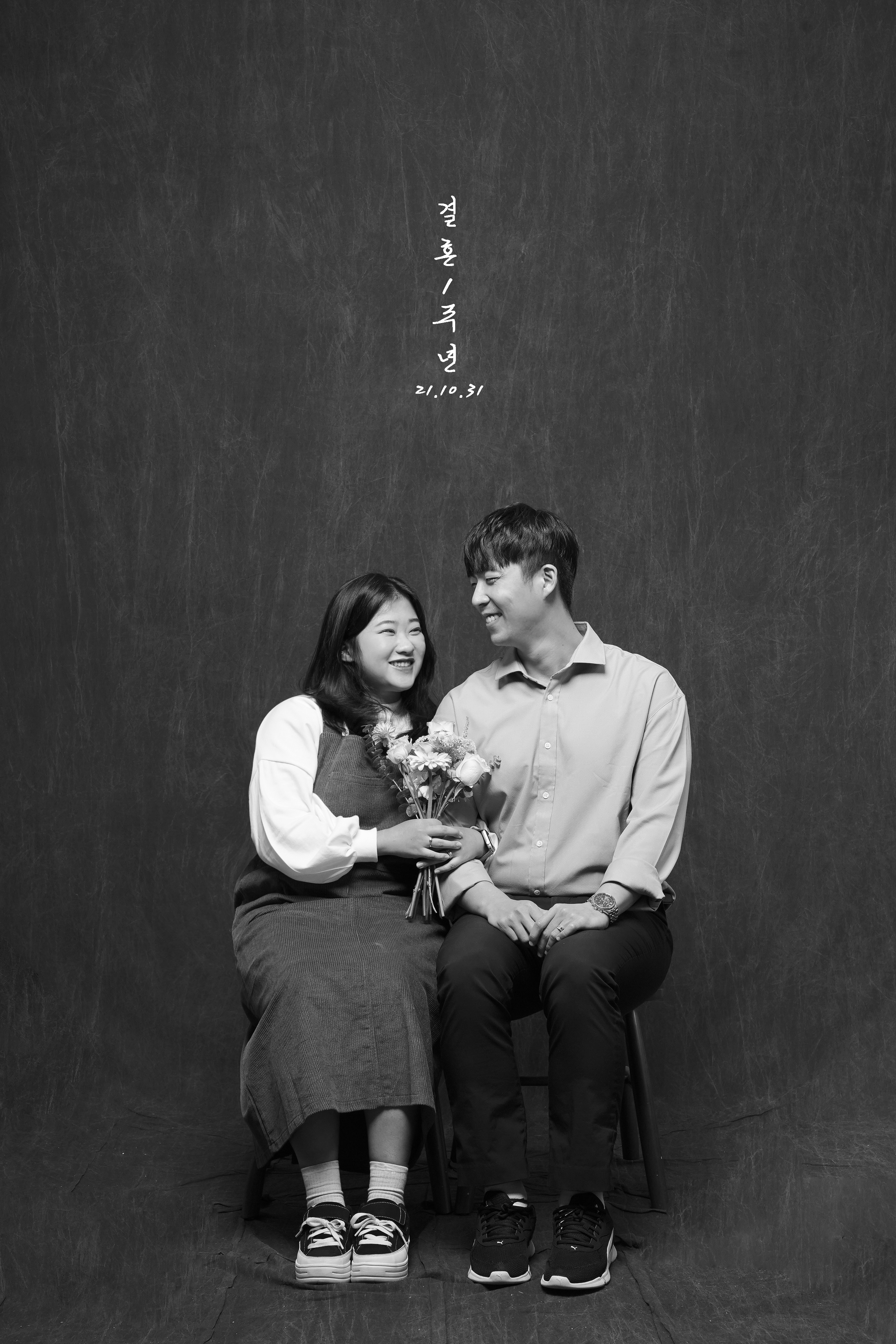 저는 처음에 흑백사진을 찍고 싶어서 흑백사진으로 검색했는데, 그때 가장 많이 나왔던 곳이 봄이사진관입니다. 여러 블로그를 찾아보니 사진을 심플하고 이쁘게 찍어주시는 것 같아서 결정하게 되었습니다. 위의 사진이 첫 번째로 찍었던 1주년 사진입니다. 스튜디오에 방문하면 거울 보고 정리할 시간을 주시고 다 되면 촬영을 해주십니다. 남이 찍어주는 사진이 어색했던 저희를 위해 간단하게 포즈도 주문해 주십니다. 카메라 앞에서 뚝딱거리는 사람들도 크게 걱정하지 않아도 될 것 같습니다. 간단한 소품들도 준비되어 있으니 활용을 하시면 조금 더 자연스러운 사진이 나올 것 같습니다. 저는 남편에게 받은 꽃을 항상 챙겨가서 찍었습니다. 의미가 있기도 하고, 기념일에 항상 꽃을 챙겨주는 남편이라는 걸 함께 남겨놓기 위해서랄까요. 이 글을 쓰면서 사진을 오랜만에 다시 봤는데 아주 풋풋한 모습입니다. 둘 다 20대여서 그럴까요. 지금의 모습과는 조금 다른 것 같기도 합니다.