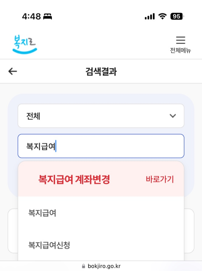 '복지급여 계좌변경'을 검색하면 바로가기가 나오는데 작동을 안 함ㅎㅎ.. 오류뜸..