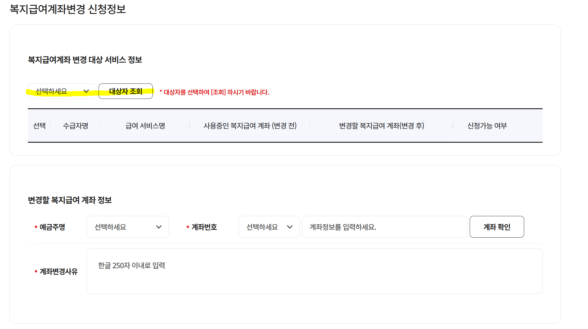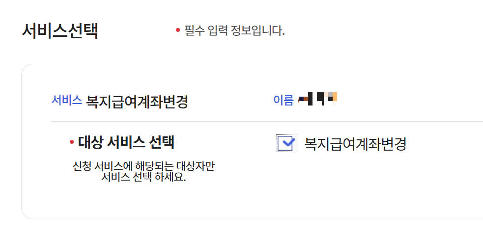 7. 서비스선택에서 복지급여계좌변경 체크!