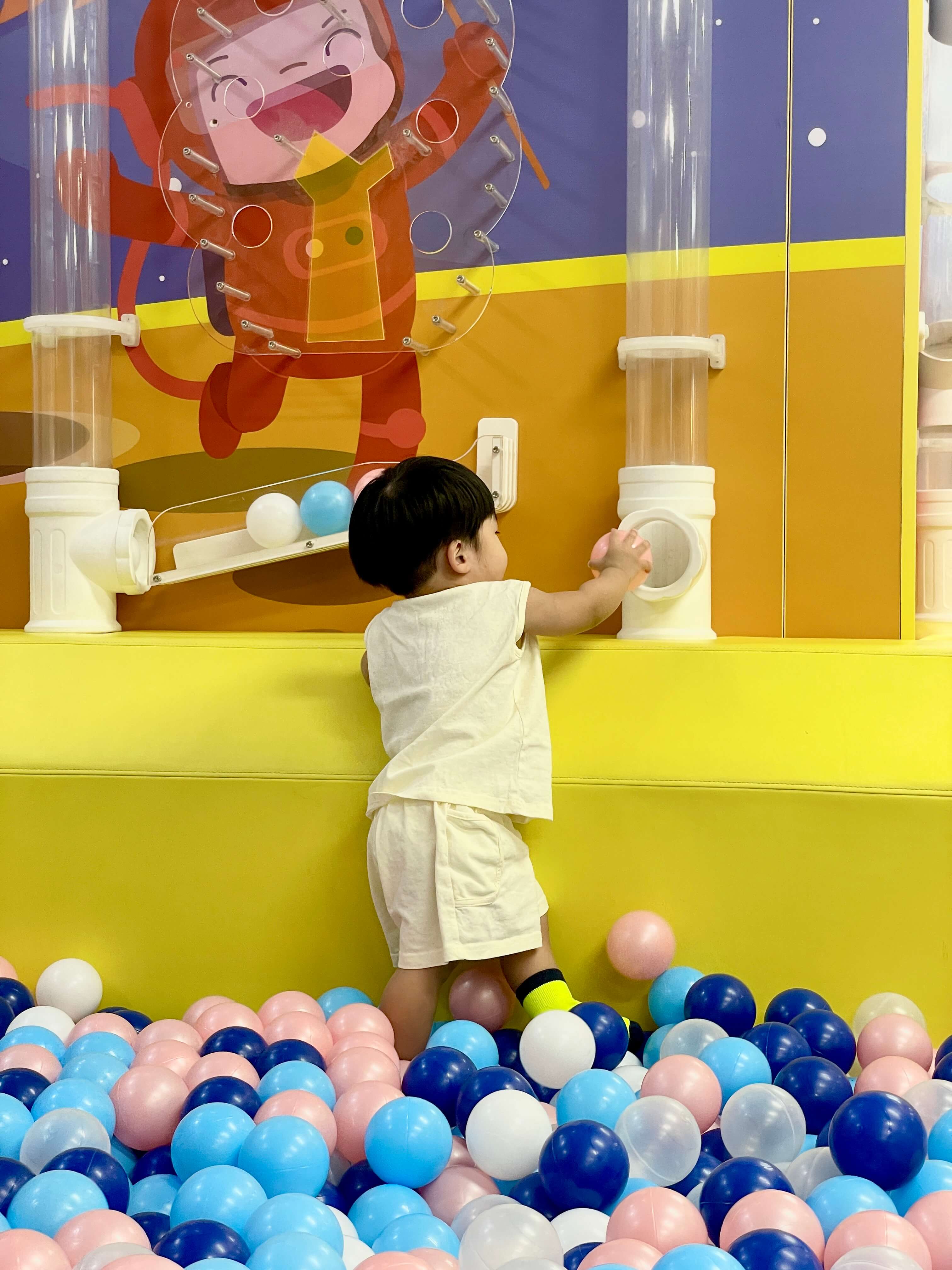 입구에 있는 알록달록한 볼풀장에는 미끄럼틀도 있고 공을 넣을 수 있는 장치들이 여러 개 있는데, 아꼬가 정말 좋아함. 공 넣으면 위로 올라갔다가 다시 굴러 나와서 또 위로 올라가고 무한 반복. 그러다가 갑자기 자기 양말을 벗어서 넣어서 깜짝 놀램ㅋㅋㅋㅋㅋㅋㅋ 한 바퀴 돌고 나왔길래 주워갔습니다 하하