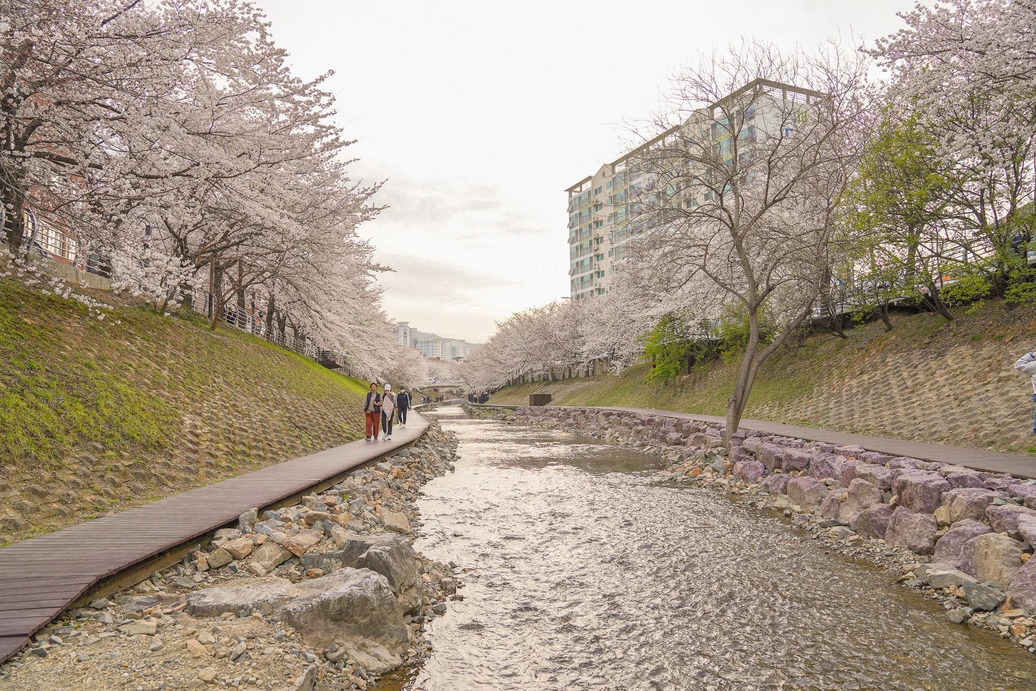 저도 무거천은 처음 가보는 곳이었습니다. 하지만 만개하지 않아서 아쉬웠다는 평이 있었습니다. 축제가 끝나고 나서 벚꽃이 만개한 것 같습니다. 축제가 끝난 뒤라 푸드트럭이나 각종 볼거리가 없는 게 아쉬웠지만 활짝 핀 벚꽃을 보니 기분이 매우 좋았습니다. 노란색 수선화도 산책로에 피어있습니다. 아꼬는 꽃보다는 졸졸 흐르는 물소리가 더 신기했던 모양입니다. 어쨌든 사람 구경도 많이 하고 이쁜 사진도 남기고 따뜻한 날씨에 가족이 다 함께 산책하며 도란도란 얘기를 나눴던 행복한 시간이었습니다.