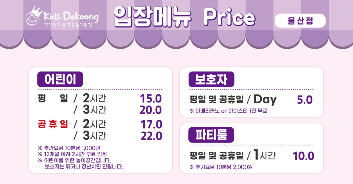 주말, 공휴일 2시간 17,000원 / 3시간 22,000원