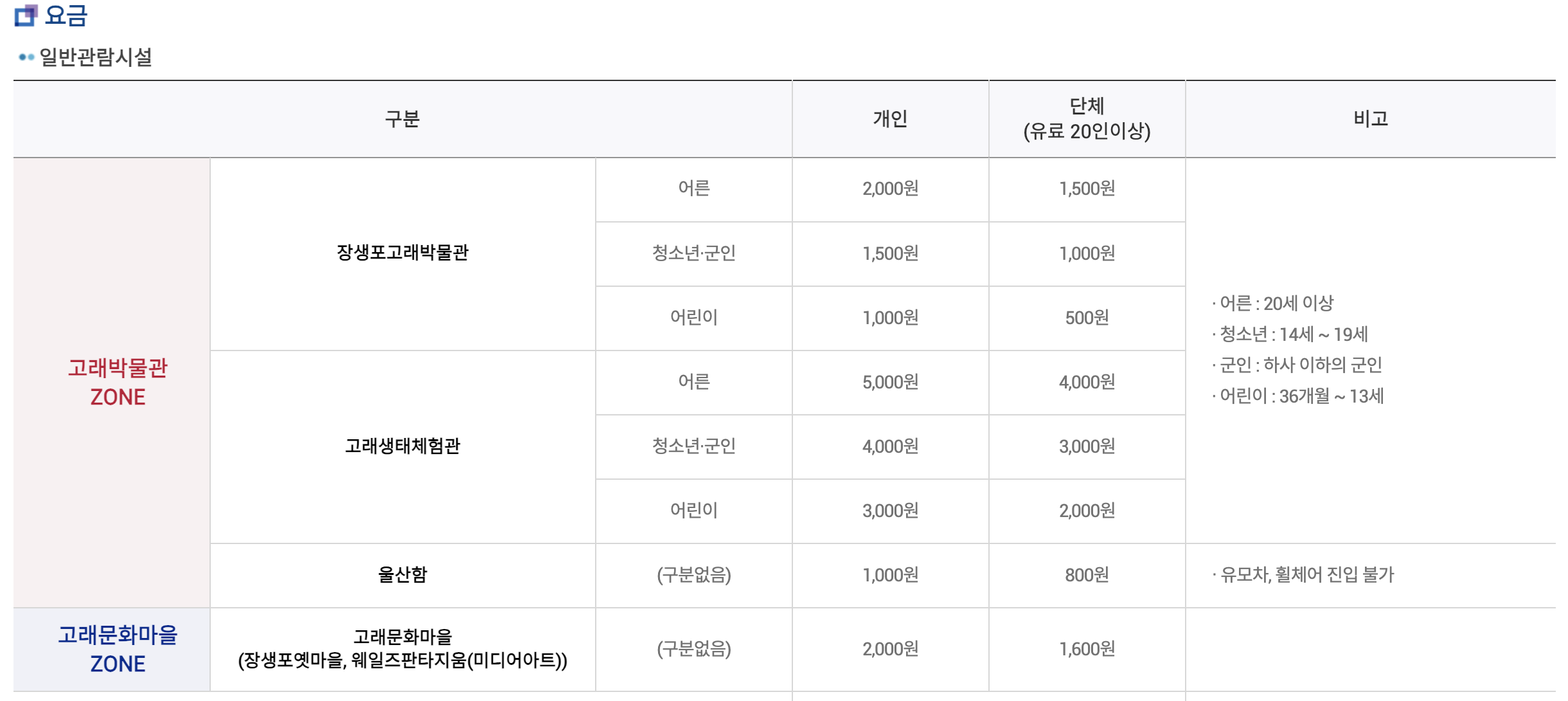 고래생태체험관의 이용 시간은 오전 9시 ~ 오후 6시까지이며 이용 요금은 아래와 같습니다.